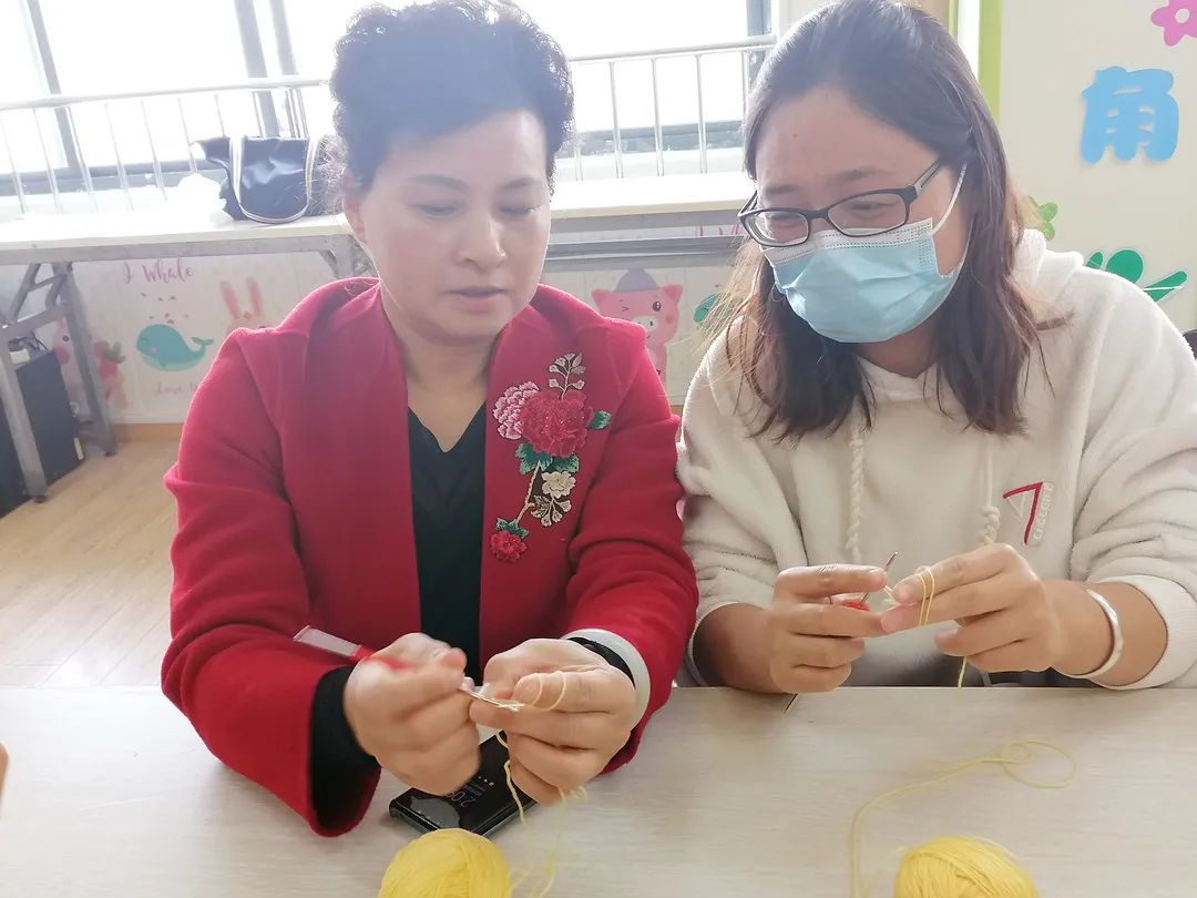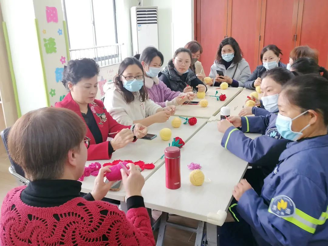 在杜老师的指导下,只见彩色的绒线在大家的手中左绕右转,最终一片片花瓣呈现在大家眼前。望着从自己手中钩织出的作品,大家绽放出喜悦的笑脸。手中的一针一线,不仅饱含了对节日的美好期盼,还缠绕着浓浓的爱心和温暖。