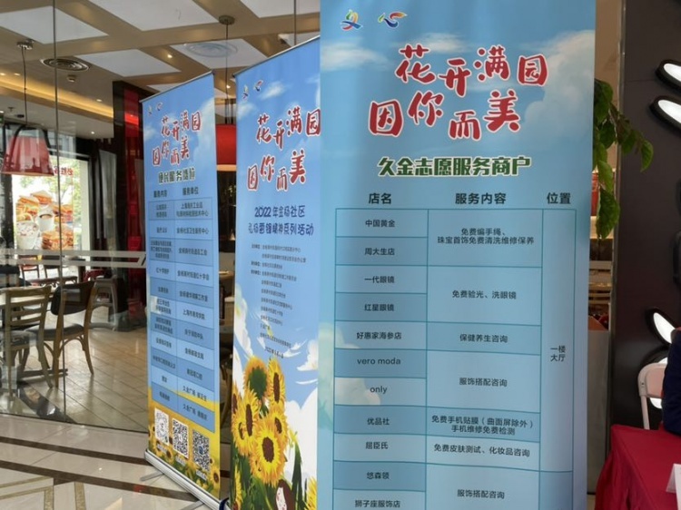 久金广场一楼大厅,“花开满园·因你而美——2022年金杨社区弘扬雷锋精神系列活动”启动。与以往志愿服务活动不同的是,此次活动将新时代文明实践特色点和志愿服务基地“搬”进了商圈。金杨新村街道新时代文明实践分中心与上海明阳玛客特企业管理有限公司(久金广场)共建签约。街道表示,此举体现了雷锋精神的传承与发展,充分融合了辖区商圈资源,引导广大商户参与到志愿服务活动中,吸引了老中青各层次的居民前来参加活动。志愿服务活动从居民区延伸到了商圈,服务项目从“修补”延展至更贴合居民需求的公益服务,志愿精神从“学雷锋纪念日”延长至平时。