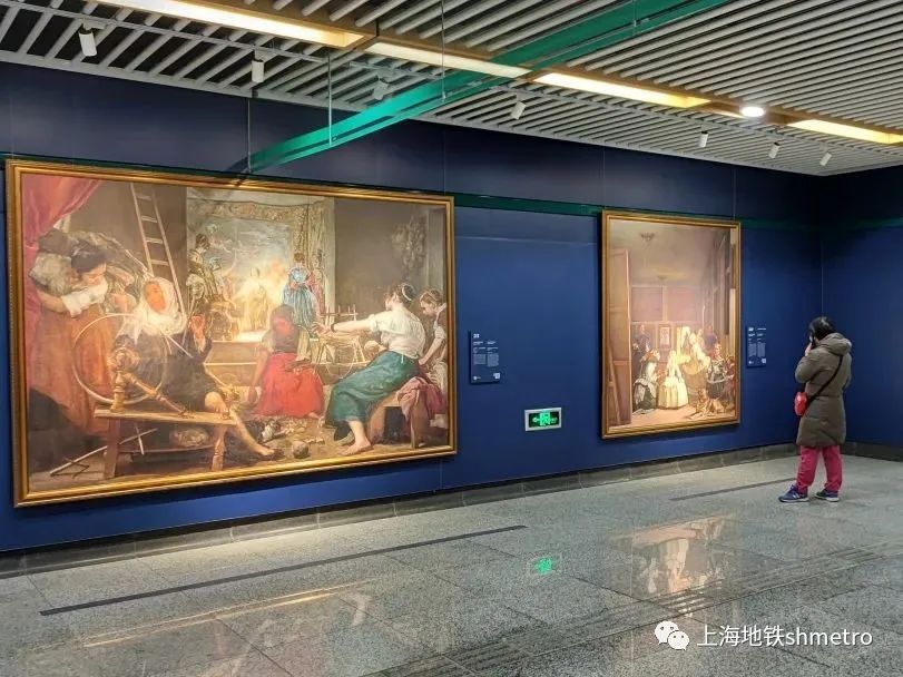一夜间,龙华中路站1号口处挂满了西班牙普拉多国家博物馆内1:1的仿真名画,其中最著名的一副《庞贝风光》接近390*140厘米,置身名画之中仿佛来到了美术馆的现场。龙华中路值班站长施悦峰告诉我们,这里不仅根据博物馆布置了名画和现场,就连参展客流的控制也都是以观展为中心定制的。