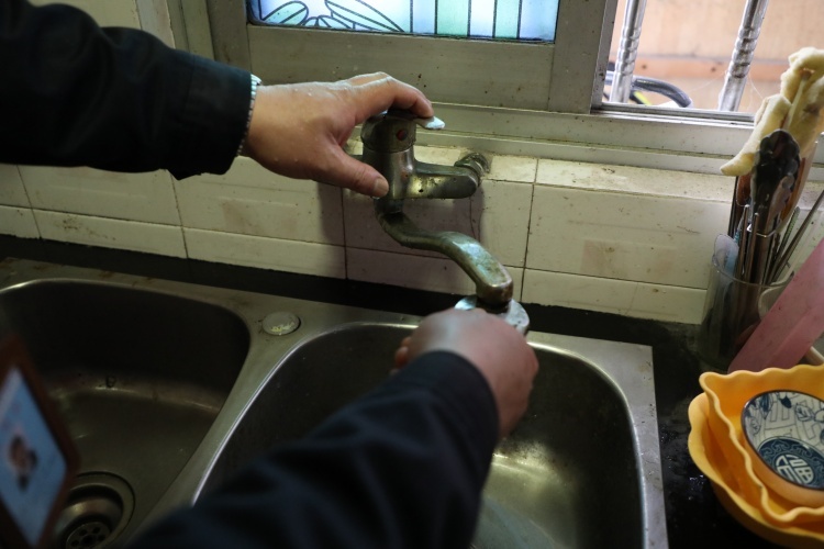 随后,“袁师傅小修队”又来到周浦镇东南一村71岁的独居老人陆老伯家。陆老伯家热水器的三角阀和厨房水龙头堵塞,无法正常使用热水。维修队员更换了全新的三角阀,并对水龙头进行了疏通,很快就解决了问题。重新用上了热水的陆老伯很是感动,对队员们连连道谢。