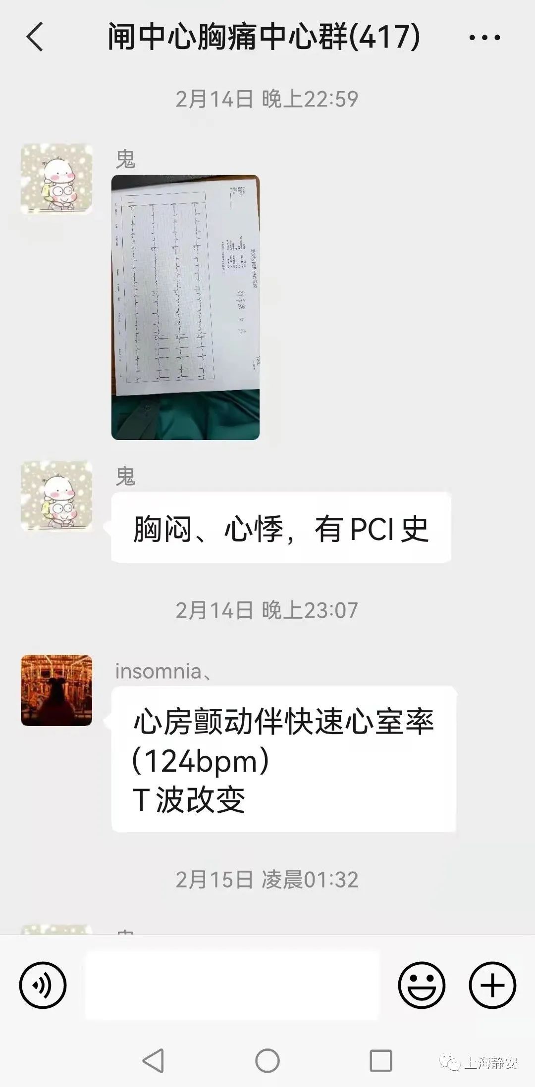 作为守护心脏的第一道关卡,心电图及时准确诊断的重要性不言而喻。无论白天还是深夜,当急诊医生将心电图像发送到微信群里,心电图医生都会在十分钟内作出判断,迅速回复。他们早已习惯了半夜里被微信提示音惊醒,有时刚刚回复完上一个消息,不到半小时,群里又上传了一张新的心电图。为此,“心电人”们早已练就了“闪睡闪醒”的技能。他们中有的人担心半夜睡太熟,听不到微信的提示音,特意把默认的提示音改成了嘹亮的军歌;还有人专门买了智能手表,把微信新消息提示设置成铃声加震动模式,晚上睡觉也戴着,确保能第一时间能看到群里信息。