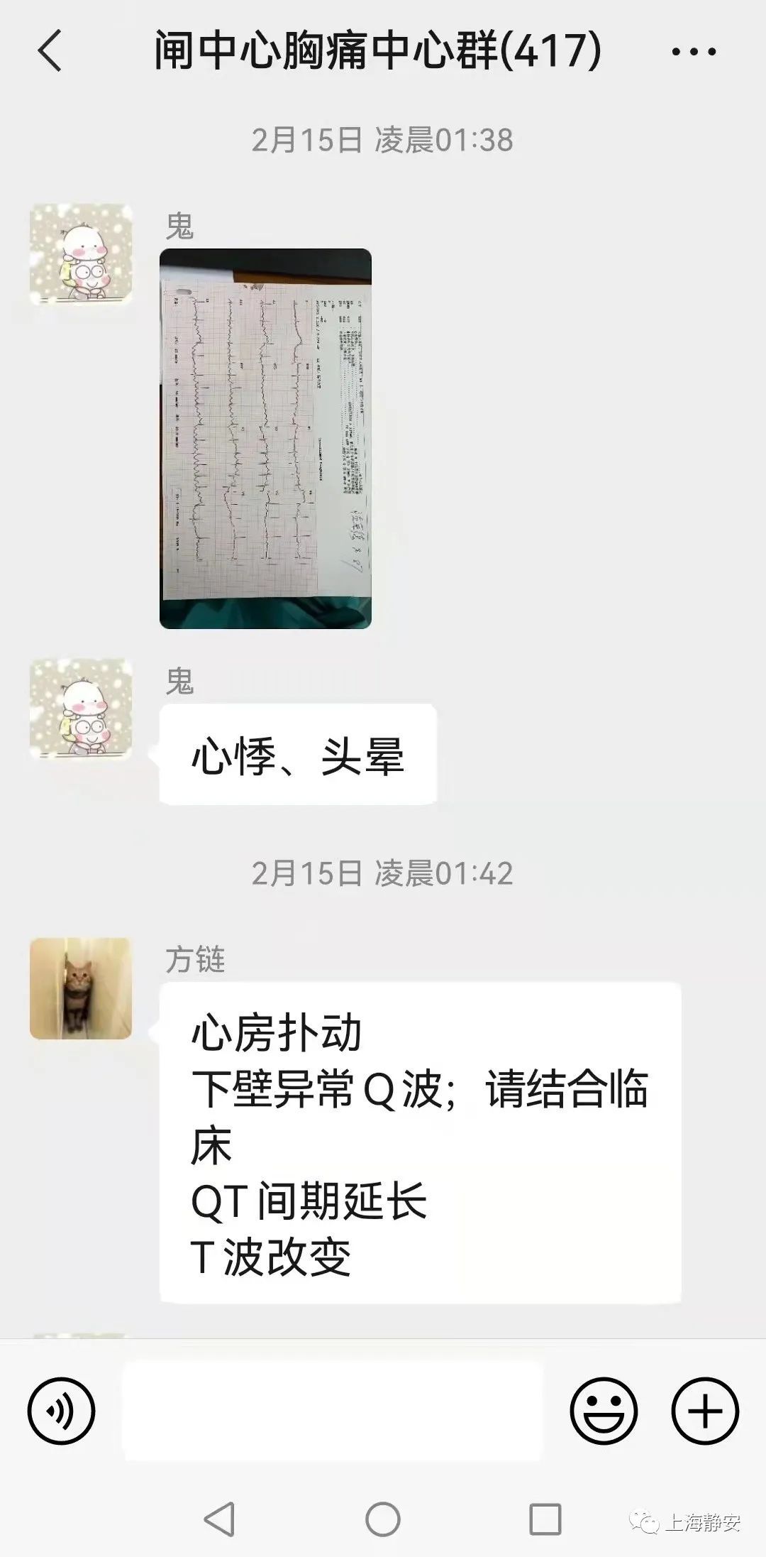 送到急诊室后,张先生的症状没有缓解,接诊医生再次为患者做了心电图,并将报告发至医院心电图诊断微信群,不到5分钟,工作群里有着四十多年心电图临床工作经验的陈麦林医生回复: