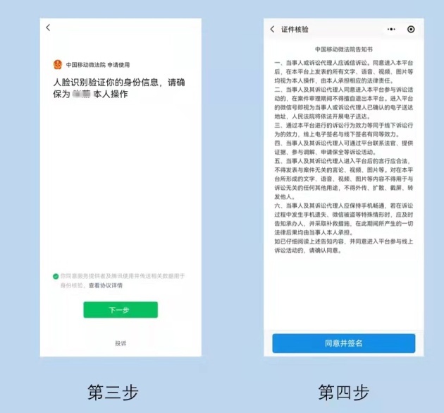 法官:当事人及其代理人可通过微信小程序搜索“中国移动微法院”进行身份认证、人脸识别、证件核验、录入电子签名等步骤注册完成后,在线登录并通过身份认证,关联相关案件参与在线调解、在线诉讼。