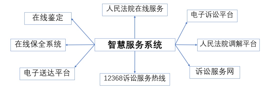 《规则》第五条至第十三条明确了智慧服务、智慧审判、智慧执行、智慧管理、司法公开平台、司法数据中台和智慧法院大脑等系统的内容、具体功能。在此我们主要介绍智慧服务系统和司法公开平台。