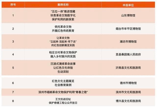 为宣传推广全省革命文物保护利用的典型做法和经验,不断提升革命文物保护利用的社会影响力和公众参与度,近日,山东省文化和旅游厅(山东省文物局)经过征集评选,公布2021年全省革命文物保护利用典型案例。