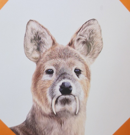 我们鹿科的动物中,有个很有意思的现象:较为原始、体型较小的种类,雄性有獠牙——也就是上大齿。我们的獠牙十分巨大,最长可达8cm,要知道个头大的獐,体长也不过1米而已。这长长的獠牙,为我们博得了“vampire deer”这个英文名。我的獠牙还会动哦,在吃东西的时候,獠牙会倒下来,免得吃吃吃的时候碰坏。但要是进入了战斗状态,獠牙就会“嗖”的一下立起来。