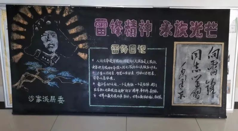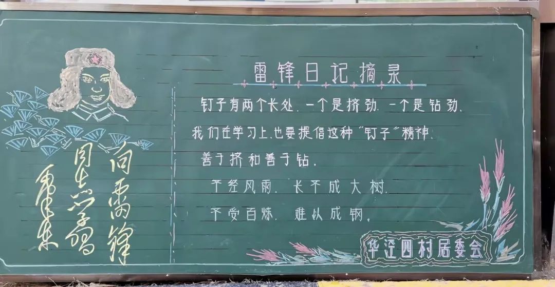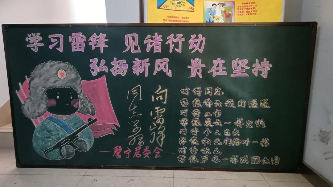 华泾镇各居民区利用黑板报这块宣传阵地传播雷锋精神,居委干部、社区能人大展身手,一块块主题明确、色彩鲜明、图文并茂的黑板报出现在社区的橱窗中、居委过道的醒目处、学雷锋志愿服务的活动现场......这股“学雷锋”的志愿之风吹遍了社区每个角落。