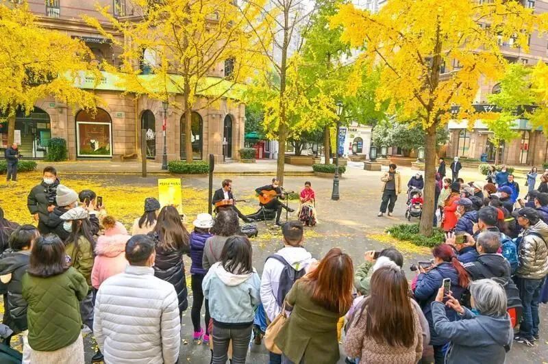 每到秋末冬初,黄金城道被银杏树叶染黄,名副其实“黄金”满地,银杏艺术生活节也在此上演,商业表演、艺术展览……丰富多彩的活动让古北社区居民沉浸在艺术文化中,乐享惬意的生活。