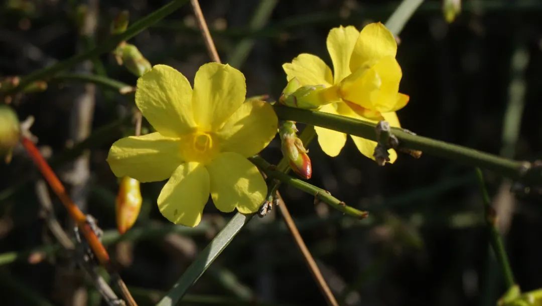 迎春花因其花开在立春左右,所以得名“迎春”。迎春花的花期较长,整个春季都能看到它的身影。它们的花为明黄色,着生于枝条上,婀娜多姿,十分美丽。
