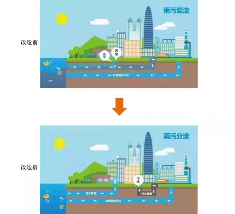 积极推进小区截污纳管改造,部分区域采用智慧截留井技术将旱流污水和初期雨水送入污水处理厂,解决小区雨污合流现状,改善生态环境。