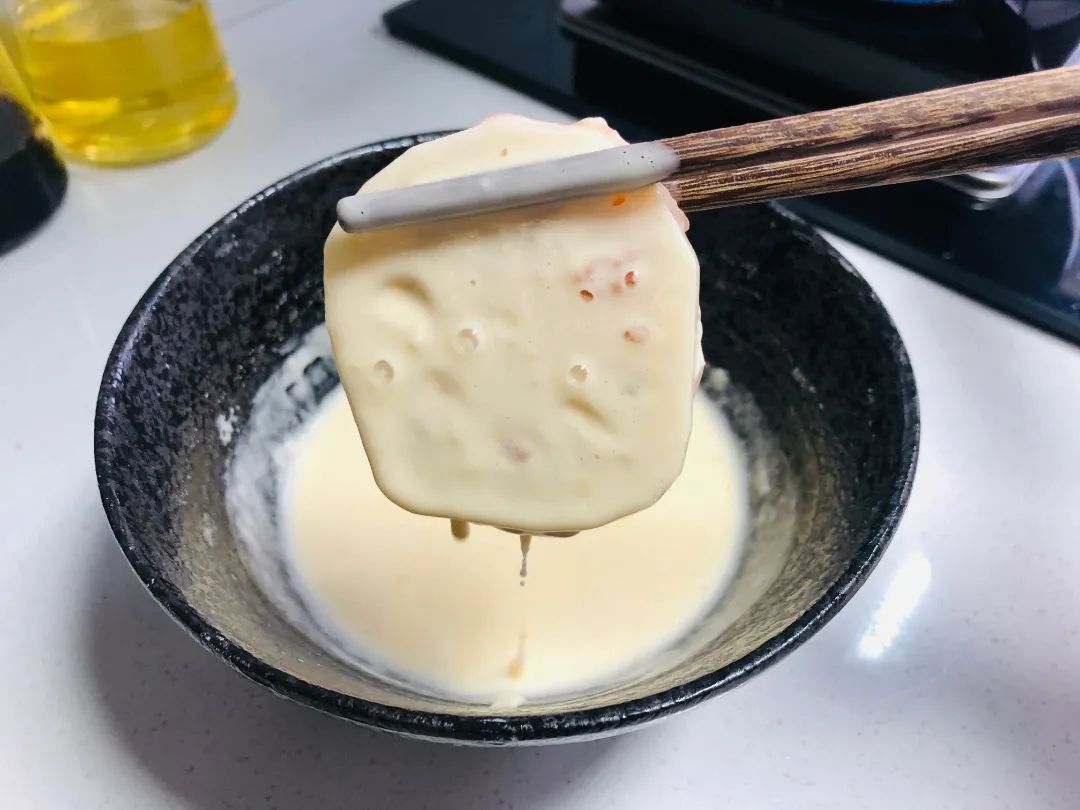 4.碗中加面粉、淀粉、鸡蛋、少许水,搅拌成糊状,将藕合依次均匀裹上面糊;