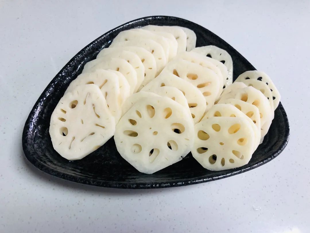 1.准备好猪肉末,莲藕洗净切成薄片备用;