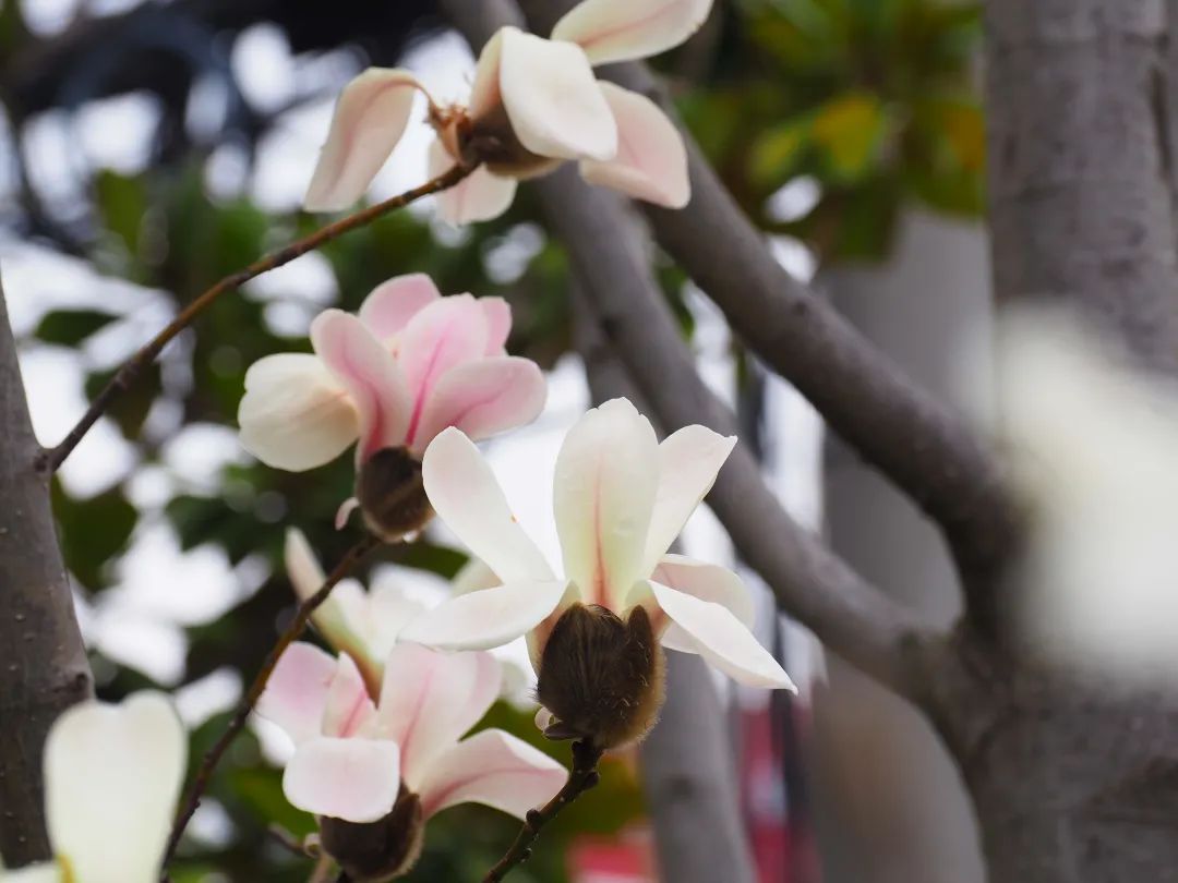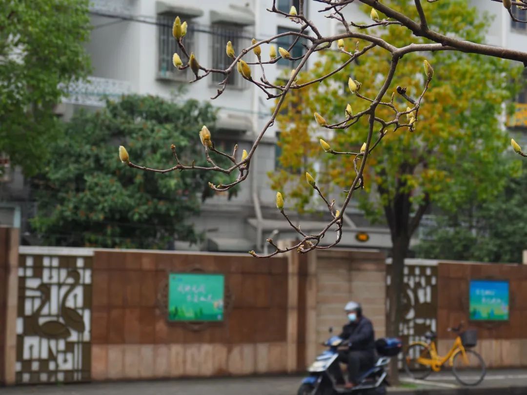 而在万里街道的富平路,80余棵玉兰树连成一条市花景观漫步道,走在玉兰花下,市民们不经意地抬头就能看到一大片含苞待放的玉兰花。“往年都是三月初盛放的,今年也差不多,后面几天气温上来了,就能看到白玉兰开满枝头的美景了。”在附近工作的许先生期待着玉兰花开的那一天,“走在花下,心情也舒畅不少。”