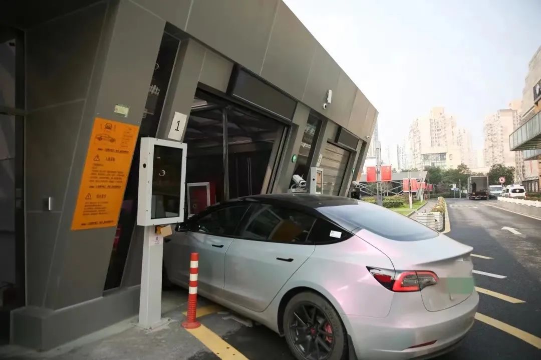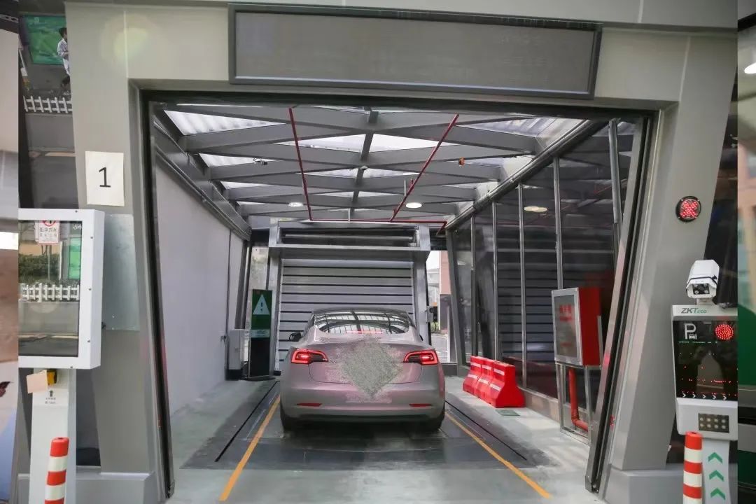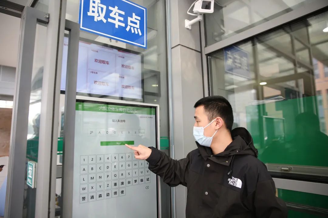 小交在上海市第六人民医院智能立体车库入口处看到,该车库有300个车位,设置了4个出入口,可以满足4辆车同时进行停车和取车,减少高峰时期车辆的排队时间。