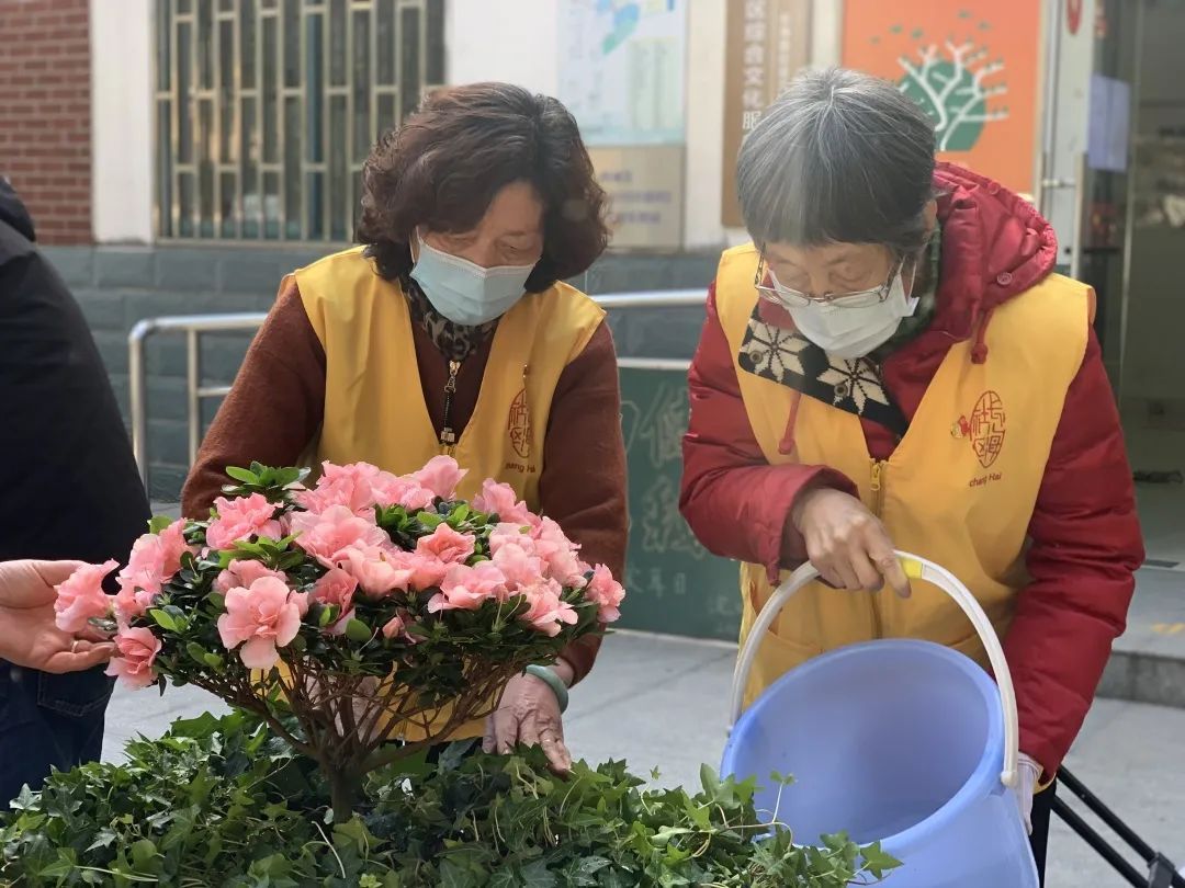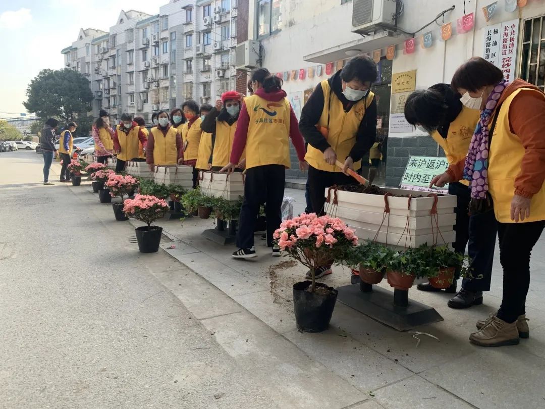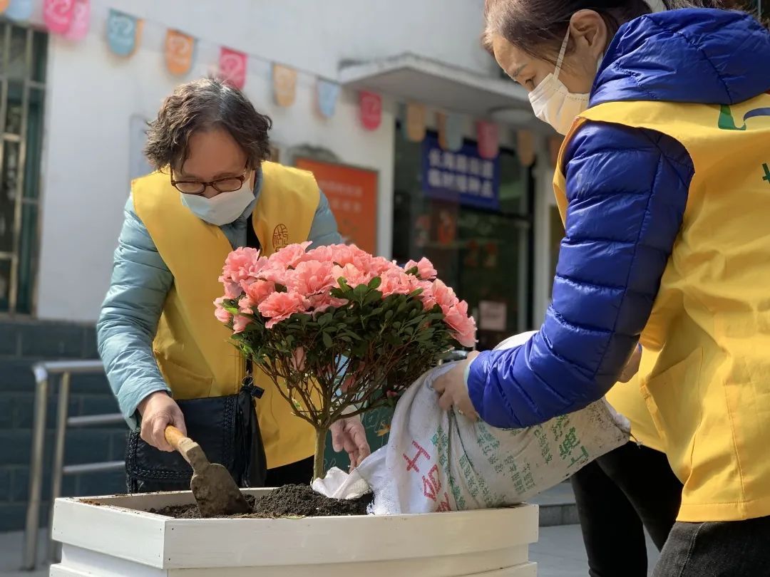国际劳动妇女节即将到来,3月7日,杨浦的浣纱四村小区开展了一场三八妇女节主题活动,邀请社区女性志愿者们一起栽植鲜花,共享春天的气息。