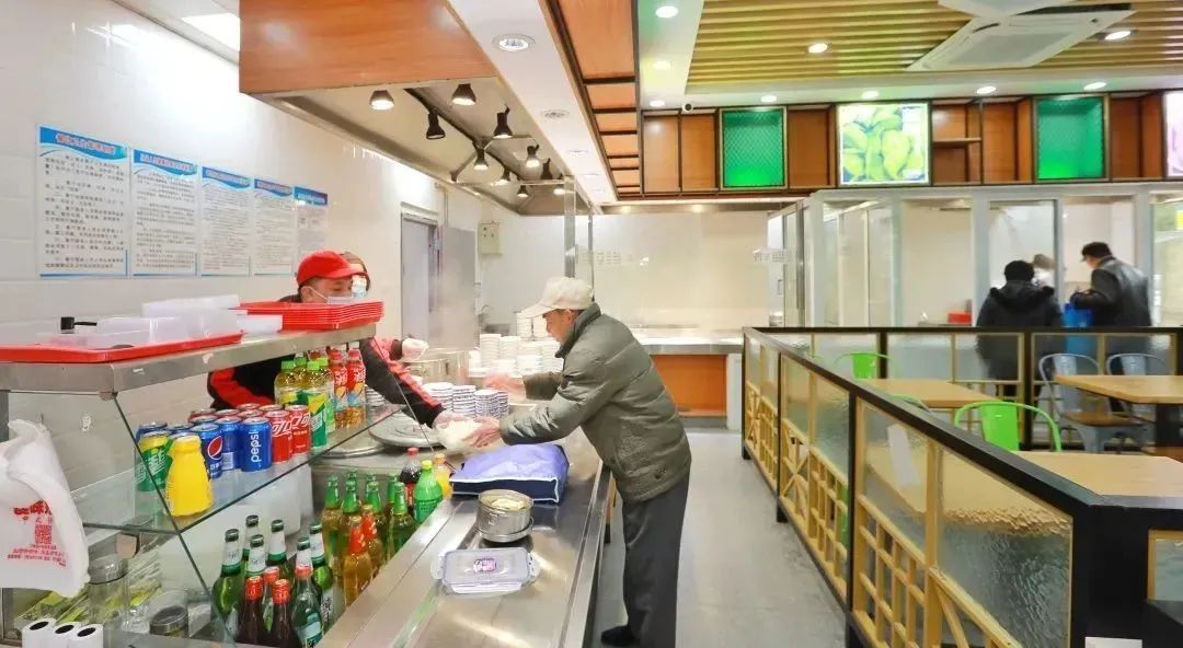 这里每一层都设置了针对老年人“高频”需求的服务。一楼是长者食堂,考虑到部分腿脚不便的老人的需求,这里以“堂食+送餐上门”模式提供服务。日供应量最高可达800客,覆盖周边15个居委会。