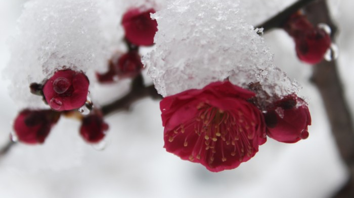 红梅吐蕊,白梅飘香