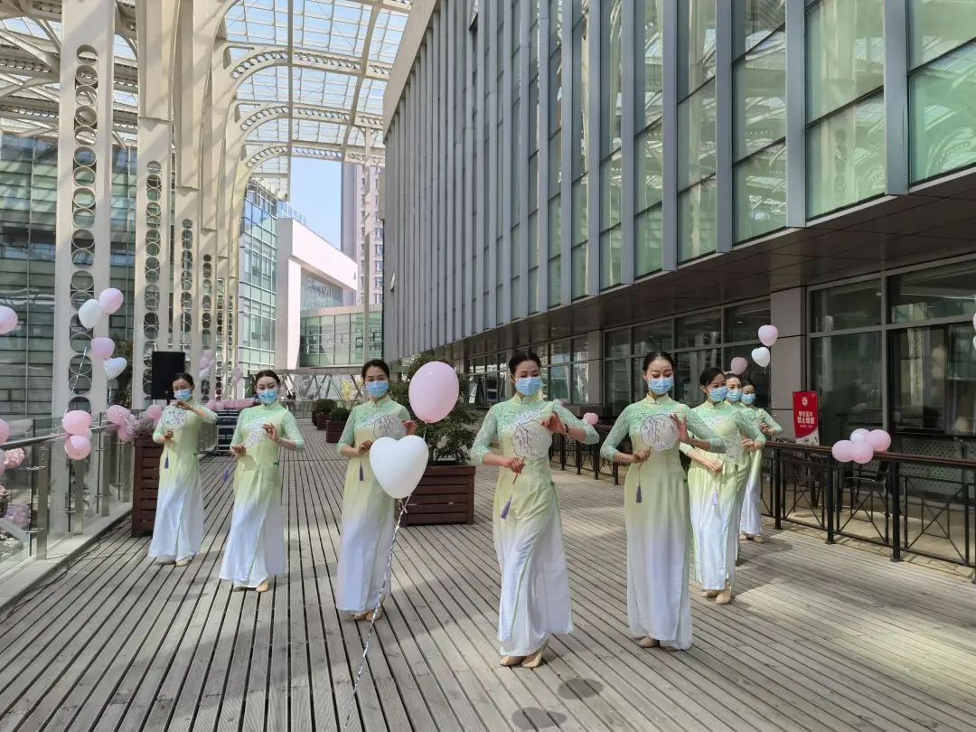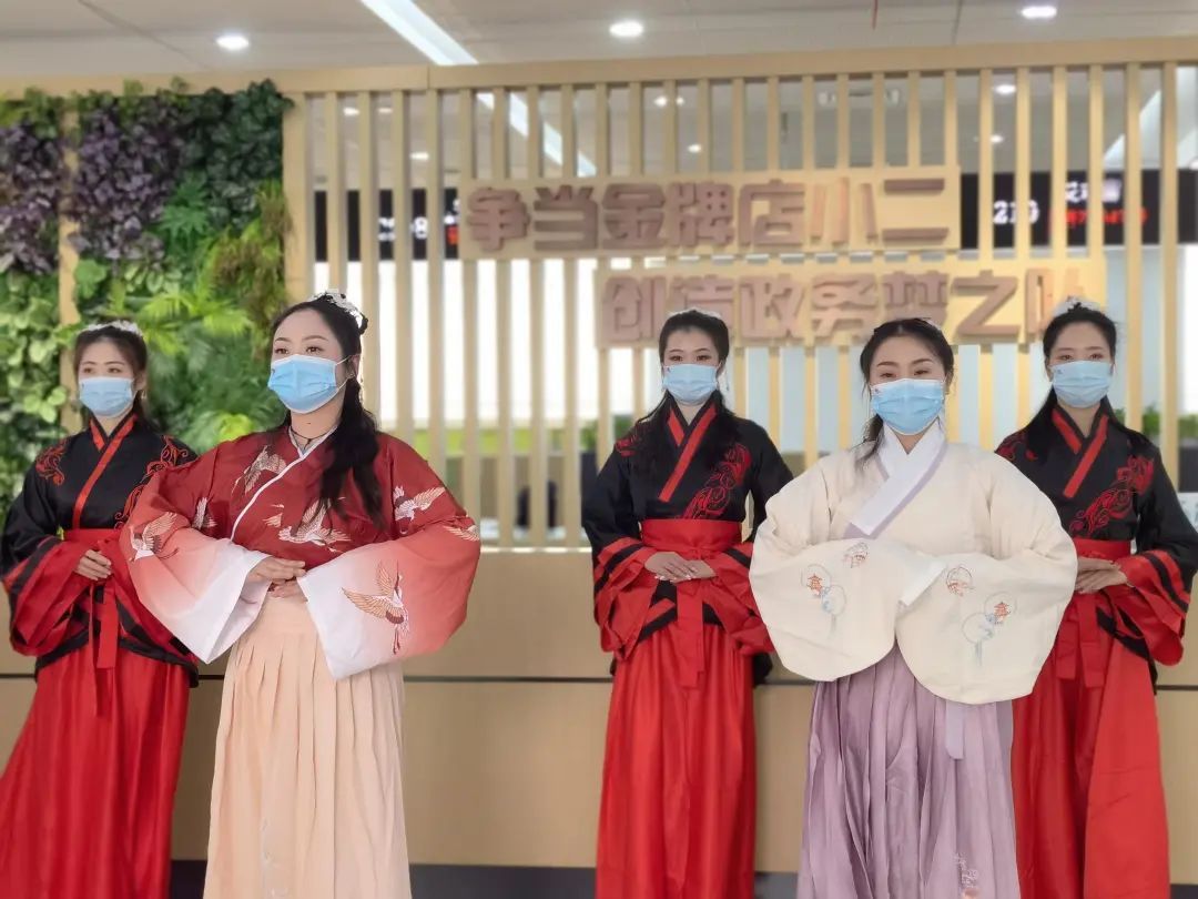 在区行政服务中心,走秀快闪令人目不暇接。平日里忙着在窗口为老百姓服务的女性工作者们,趁着中午午休的时间,换上一身身优雅别致的海派旗袍、古色古香的汉服,穿过一个个政务服务大厅,以自信优雅的步伐、婀娜多姿的舞蹈,彰显出新时代女性的别样风采。