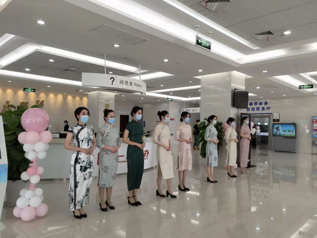 是第112个“三八”国际劳动妇女节,在这样一个特殊的节日里,近100名窗口工作者身穿旗袍、汉服、工作服,在奉贤区行政服务中心演绎了一场精彩纷呈的走秀快闪活动。