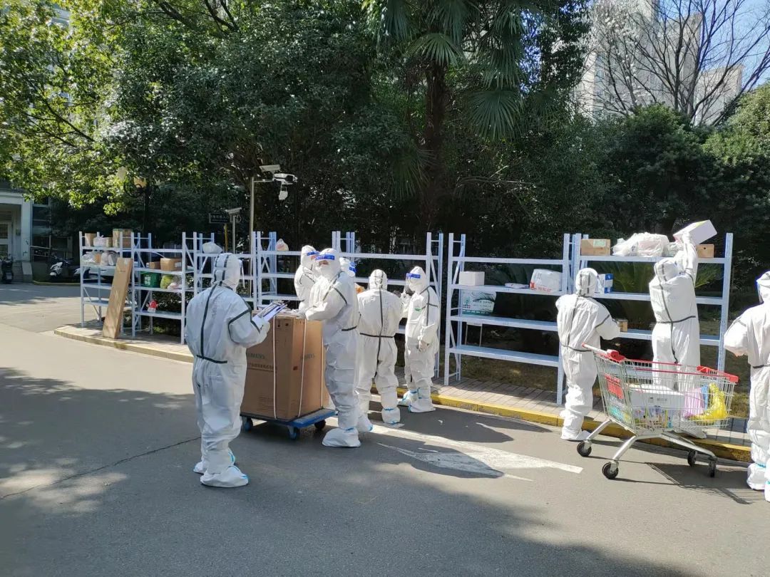 14:00,小区住户陈先生收到通知后返回家中,他看到小区门口已堆满了闭环管理物资,感慨道:“兵马未动,粮草先行。高效!”