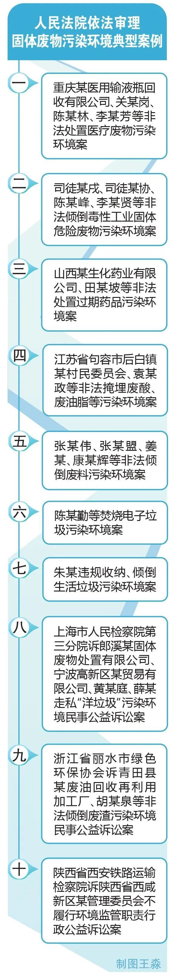 各级人民法院坚持以人民为中心的司法理念,充分发挥审判职能作用,把贯彻落实固体废物污染防治法作为助力深入打好污染防治攻坚战的重要方面,进一步加大司法惩治力度,依法审理了一批固体废物污染刑事、民事、行政案件,为满足人民群众日益增长的优美生态环境需要提供有力司法服务和保障。