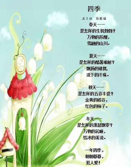 展个性作品激发潜能。老师指导学生进行诗歌创作,作品异彩纷呈!校门口的展示窗、图书馆的宣传栏、班级的墙面……到处都是展示的舞台,孩子们体验成功喜悦的同时,取长补短共同进步。
