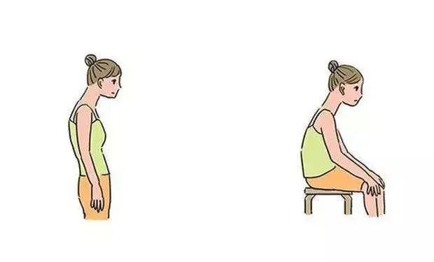 驼背时,后背蜷缩起来,肩膀向前伸,导致腹部肌肉松弛,更容易聚集脂肪,长出“小肚子”。