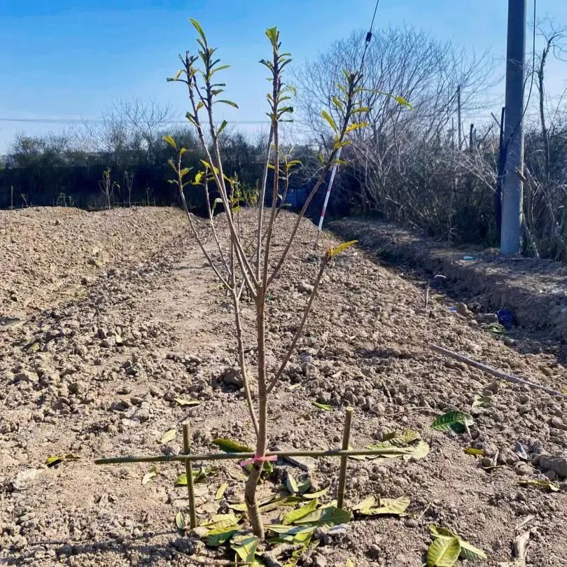 因此枇杷苗栽种后会修剪掉部分叶子,减少水分的蒸发,同时固定果苗,防止被风刮倒,提高果苗的存活率。