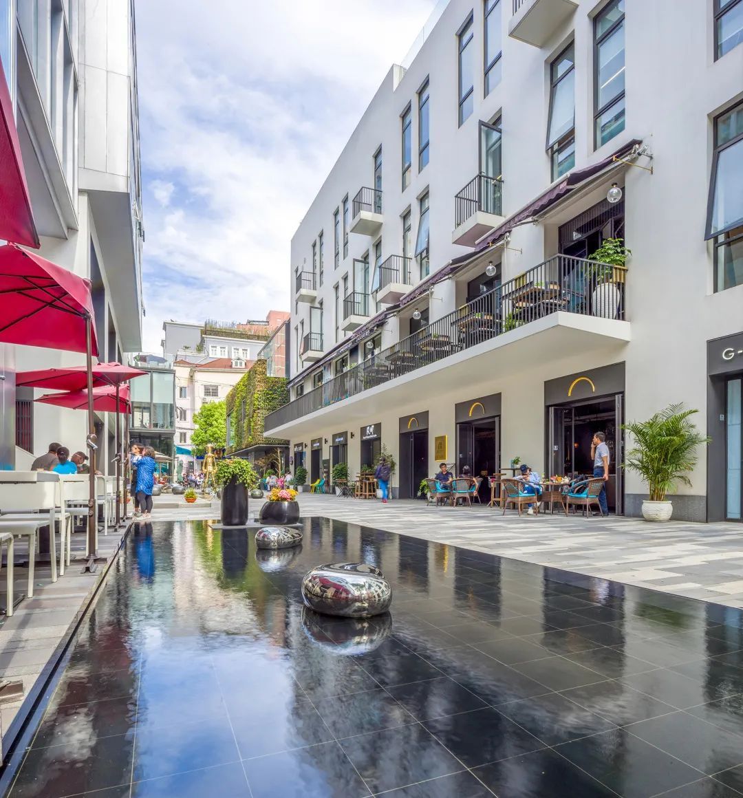 置身M+幸福里,一个“穿”字尤为合适,只因这是一条仅200米长的街区,东西笔直贯通,在一侧入口即能一眼望见另一头。因此也有不少居民把这里当作一条生活必经的通道,自由穿梭其间。同时,由于是宠物友好型园区,在这里也常常能看到可爱的汪星人,甚至还能与主人一起进入店铺。