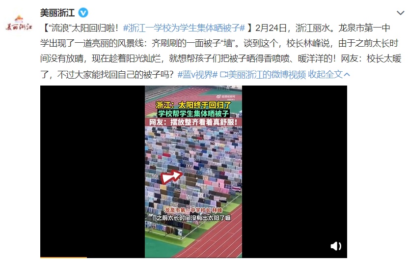 集体晒被子的壮观景象