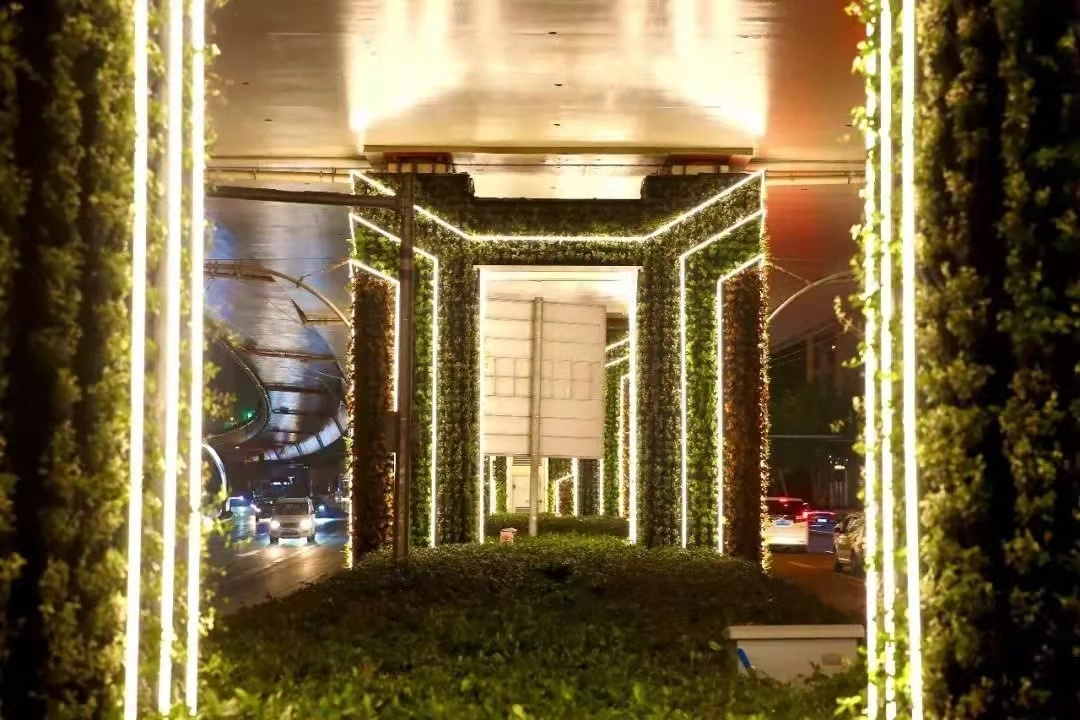 完成12处屋顶绿化建设工作、10处延安路高架沿线点位的沿口绿化布置工作;