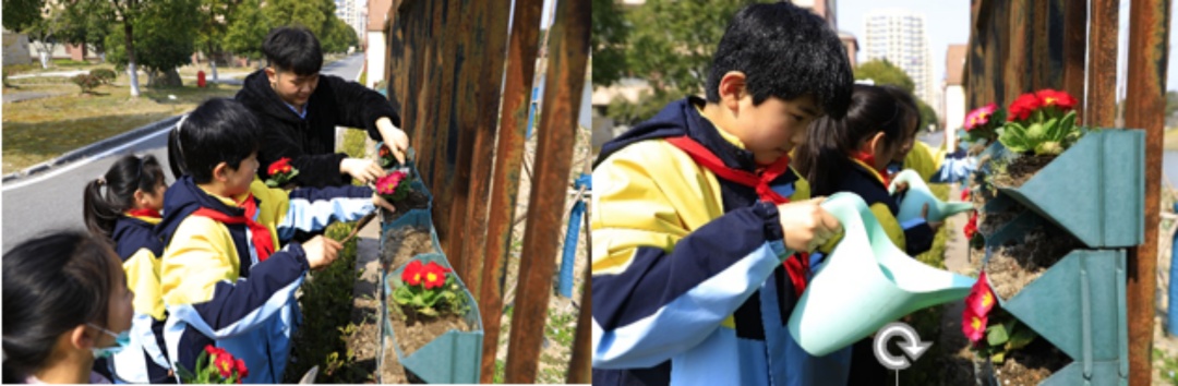 压着铁锹,提着水桶,揣着喜悦,海洪小学的孩子们在植树节前夕开展了以“亲手种植芦娃梦,俯首不忘行知恩”为主题的护绿活动,用自己的实际行动为美丽校园助力。