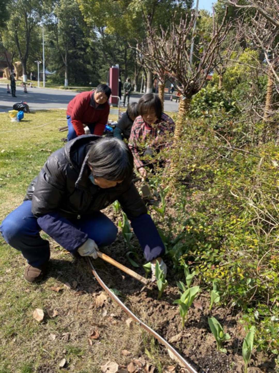 春意盎然,正值郁金香的花季,上海杉达学院在校园各处花坛种植上郁金香,后勤人员小心翼翼地将花束埋入、盖土,为全校师生提供了一个优美、整洁的校园环境。正“植”春光,播种希望。