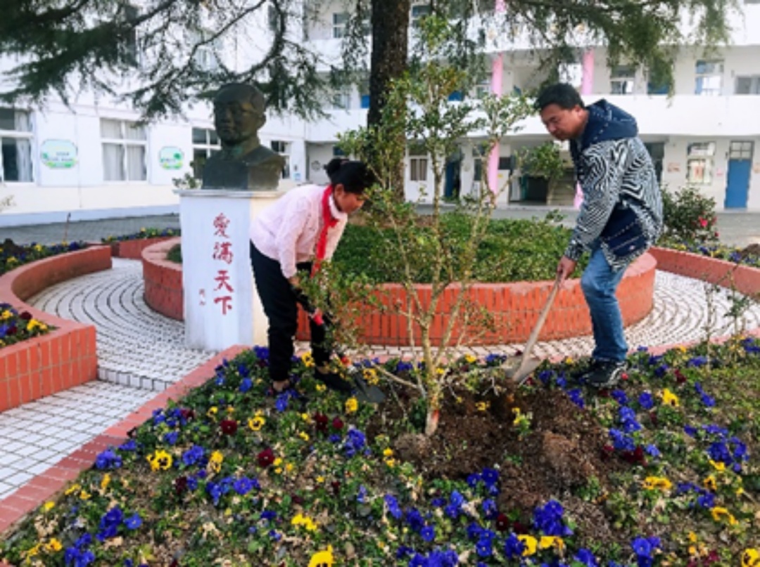 植树节前夕,新农学校少先队大队部组织一至三年级学生和六年级学生开展了“我和苗苗共成长,争做护绿小雷锋”活动。同学们移植花草,在老师的辅导下栽种、浇水,真是有模有样!