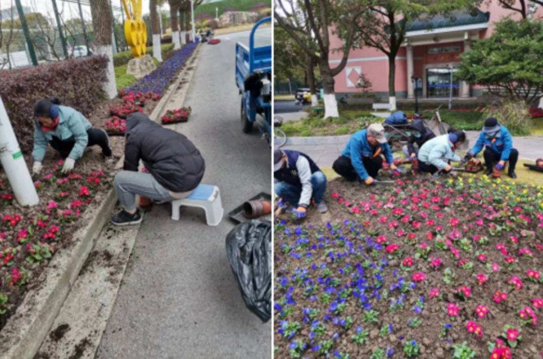 植树节前夕,上海体育学院对清源环路501号校门进口两边绿化作了整地、换种季节性花卉,并在长海路399号大门两边、中乒馆等处花坛种植草花500多平方米。随着气温上升,学校将逐步进行土壤解冻,刨好树坑,为植树做好随掘苗、随运输、随栽种、随浇水的准备。