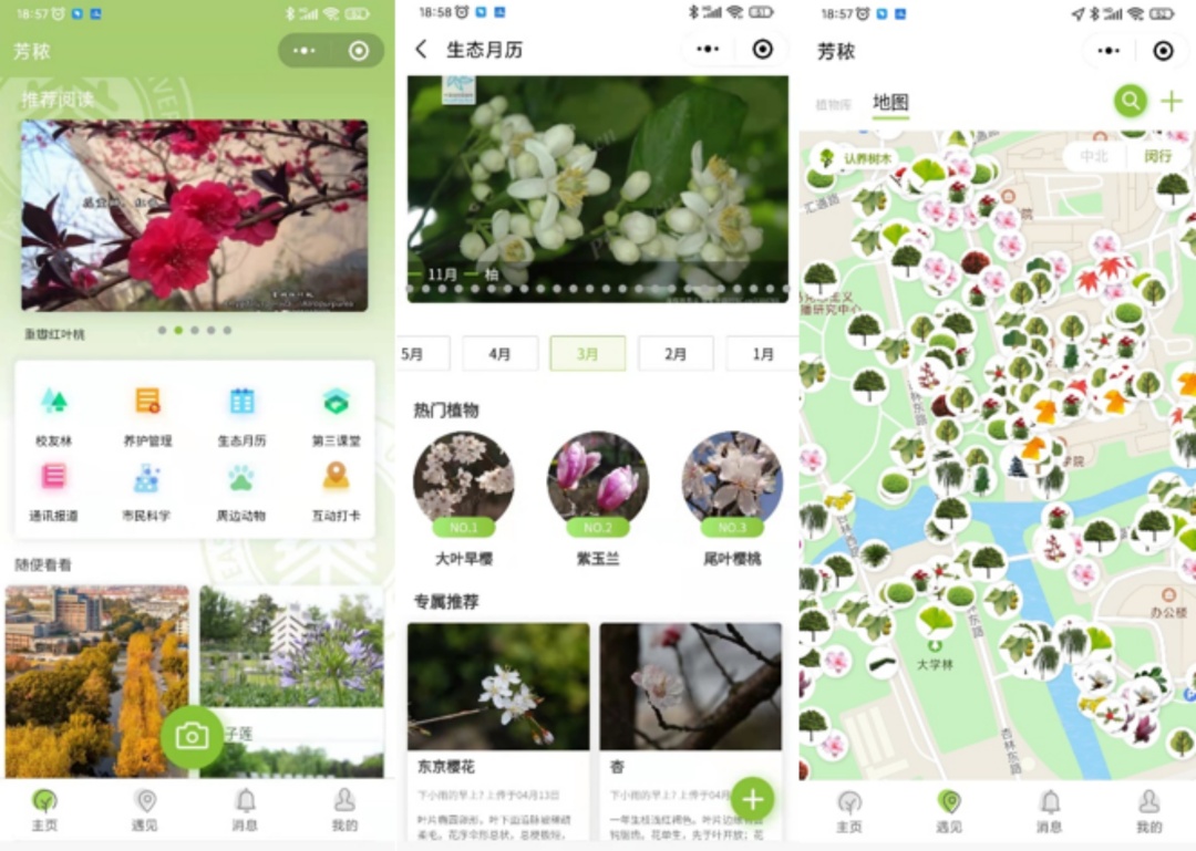 在华东师范大学普陀校区,校领导与师生代表共同种下了40棵垂丝海棠。他们为新栽的树木挂上了一个独特的“身份证”——一张印有植物信息的铭牌,宣布“芳秾”小程序的正式上线。该小程序的建立秉承着学校“一草一木皆教育”的育人理念,以植物科普为核心,着重挖掘校园环境的文化元素和育人功能,把校园建设成为培养学生的“第三课堂”,以实现校园环境的“不言之教”。