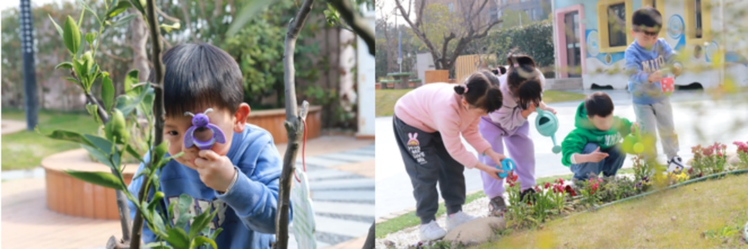 华江幼儿园开展了“寻春”和“护绿”的活动,孩子们在鸟语花香、绿意盎然的校园中与大自然亲密接触,增加对植物的喜爱,增强环保意识,从而养成爱护环境的良好习惯。