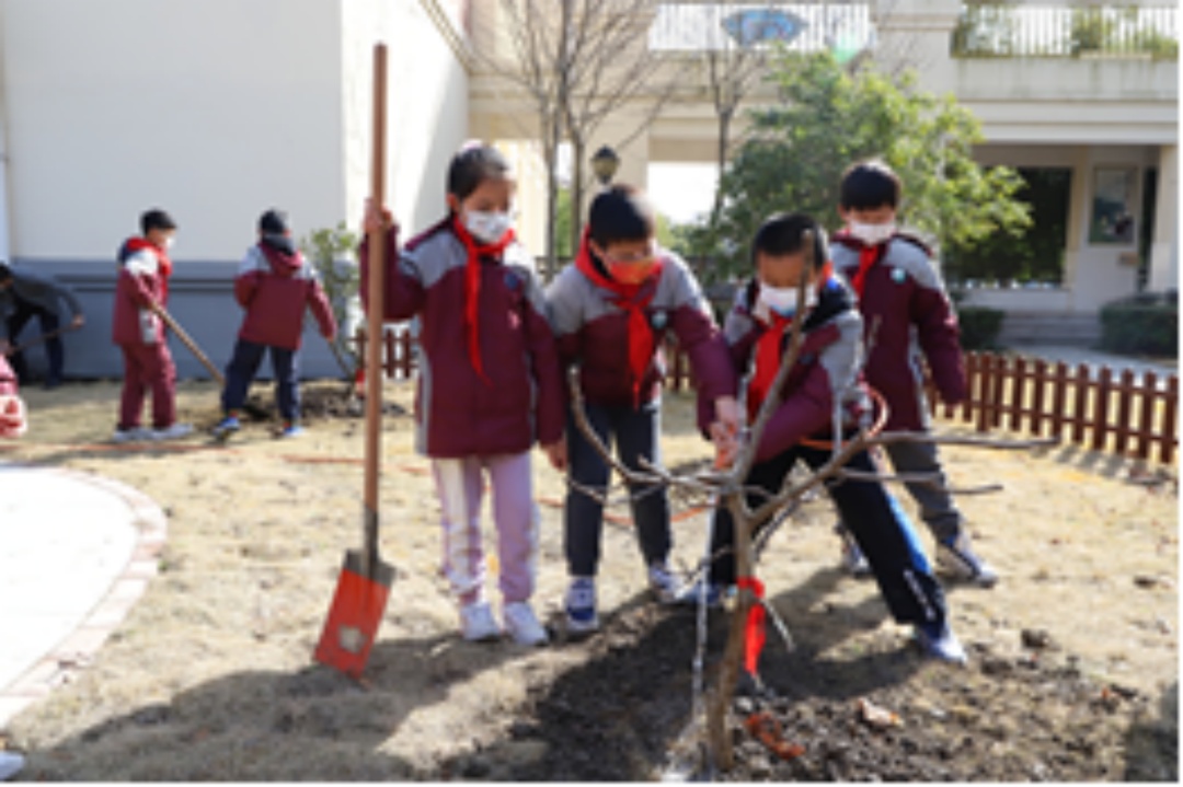 植树节前夕,浦东新区实验小学的学生来到与陈行村结对的劳动实践基地——璞石园植树。孩子们热情高涨,播下了一棵棵希望的种子。