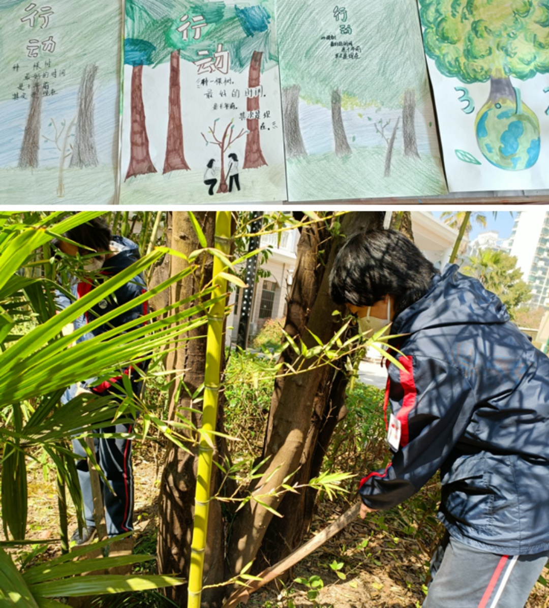 回民中学举办了“植树育人,劳动同行”相关活动,同学们亲手绘制植树海报,并为校园中的树木进行松土、拔草、浇水。