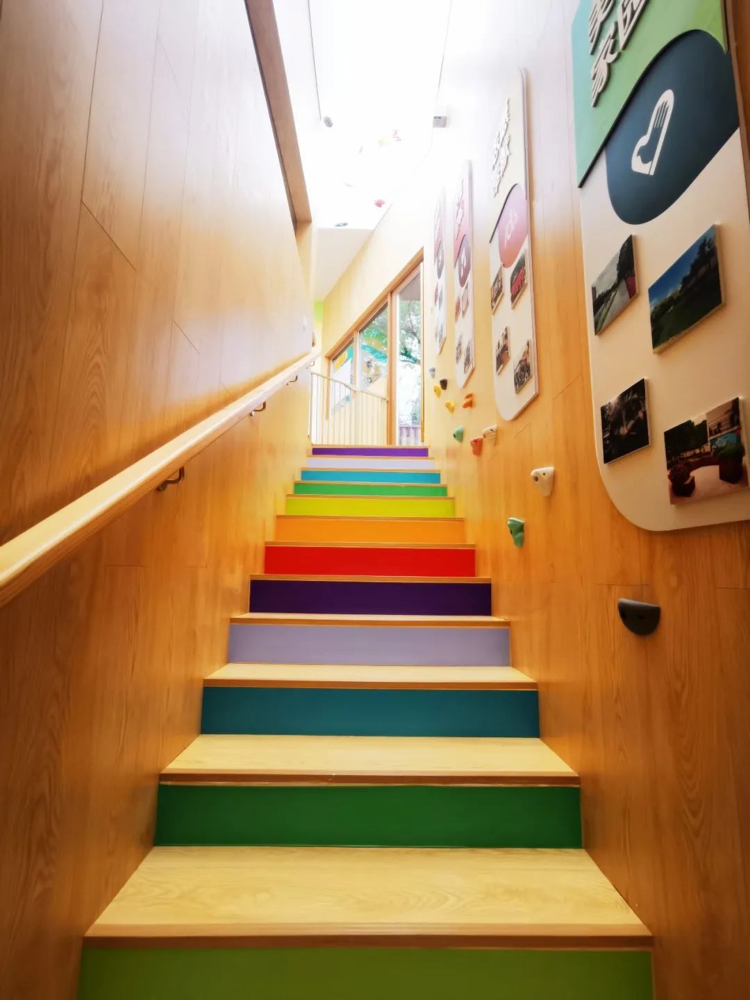 通往儿童友好区的楼梯也极具设计感,左右两边的扶手经过精细测算,分别满足老年人和孩子上楼梯的需求,非常贴心。