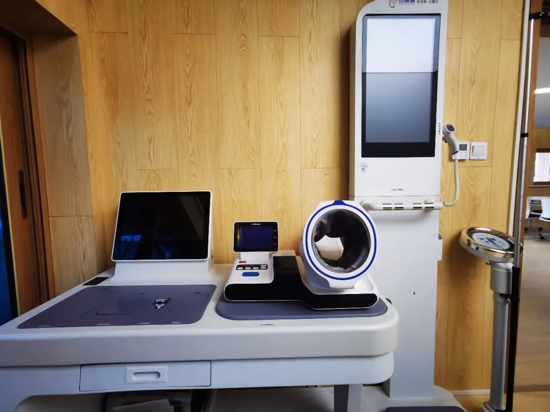 “华院故事”墙旁边的一间小屋是健康颐养区,这里空间虽小,但是布局温馨,一侧是观赏庭院玻璃窗,并设有休憩沙发。考虑到华院居民区居民老龄化程度高,健康咨询服务需求较多,室内设有健康自我观测一体机,并安排社区医生定期开展健康咨询指导。