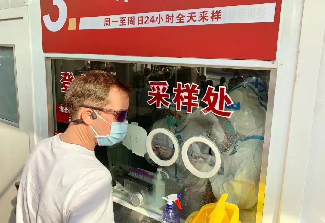 文职人员张英福是肿瘤科协理医生,包括他在内的20名协理医生最终加入到了核酸采样队伍。在院内核酸采样点、急诊核酸采样亭,都有他们帅气的身影。