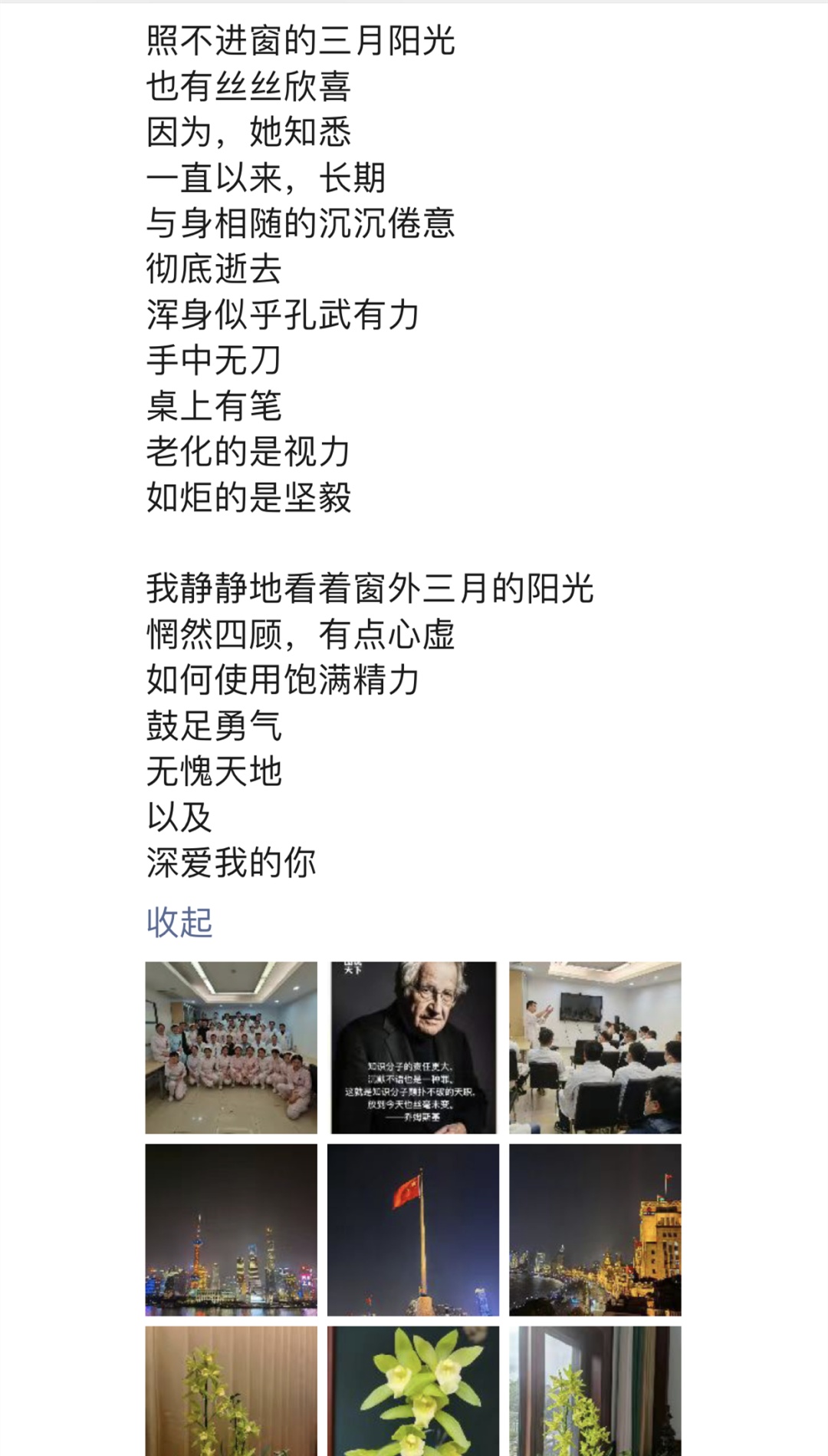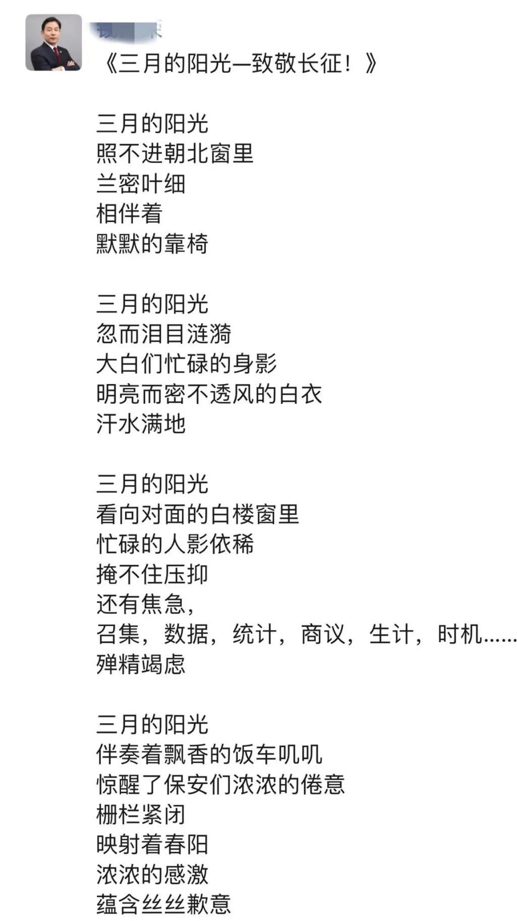 微信朋友圈里的每一张令人动容的图片、每一句朴素无华的话语,记录了长征医院每一位医护官兵、每一个工作岗位的战 " 疫 " 点滴,已然成为最美的战 " 疫 " 日记。