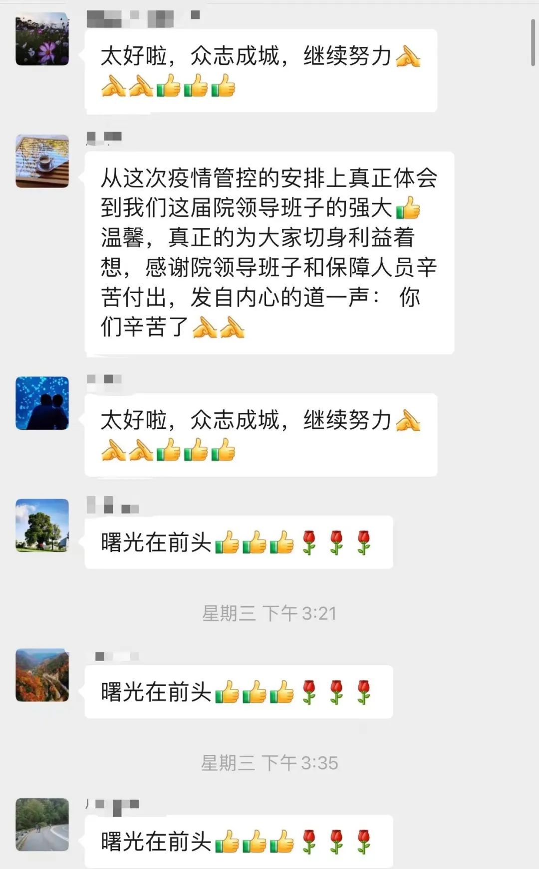 正如一位骨科进修生写给颈椎外科病区袁文主任的信中所说:“从一日三餐到生活物资一应俱全,这段时间让我感受到您们的关爱,每天老师们总会问一句‘你们吃得好吗?睡得好吗?辛苦了’……在此给医院点赞”。