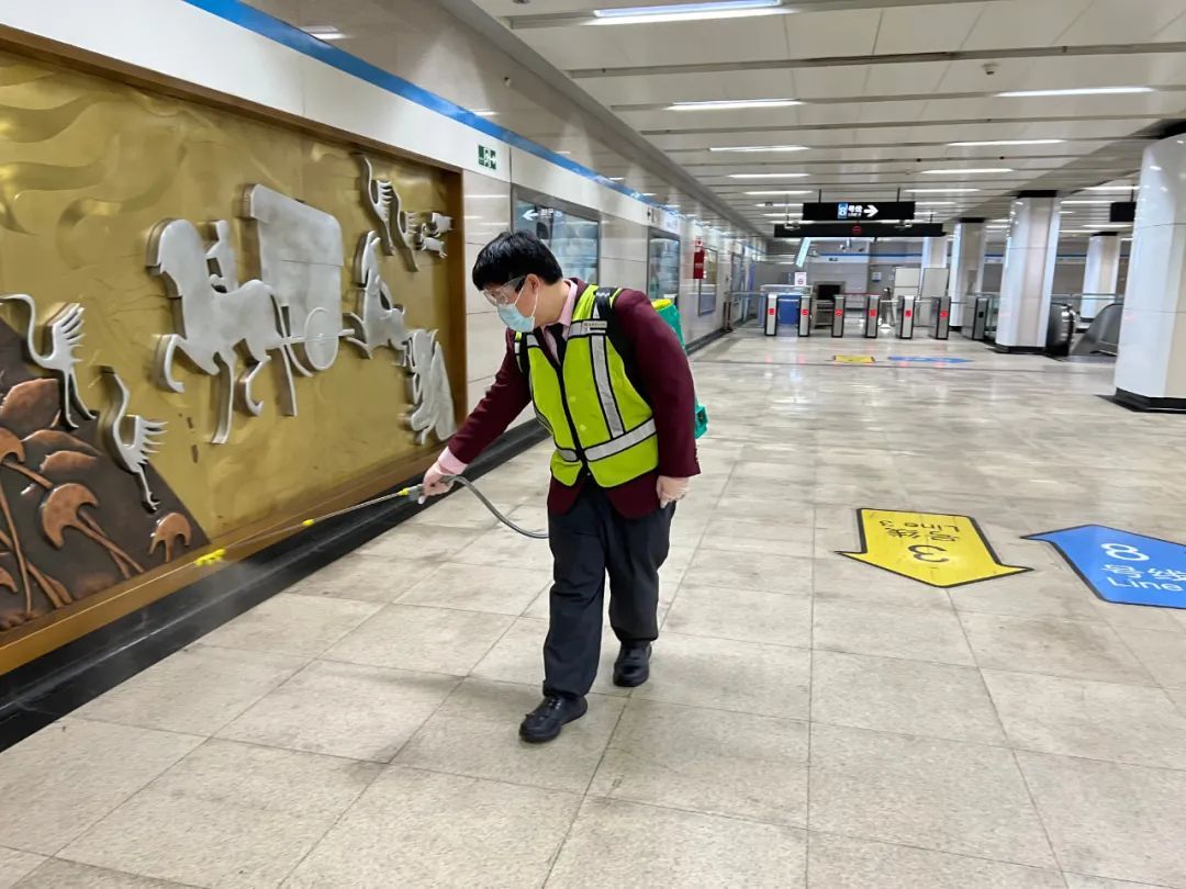 地铁12号线汉中区域车站副站长蒋芳燕介绍,目前站内白天由保洁员至少完成3次消毒工作,根据客流量还会随时对重点区域提高消毒频次,每天晚上结束运营后和次日运营前均会由当班的地铁工作人员完成站内消毒工作,整个站内重点区域每天至少会完成5次消毒工作。
