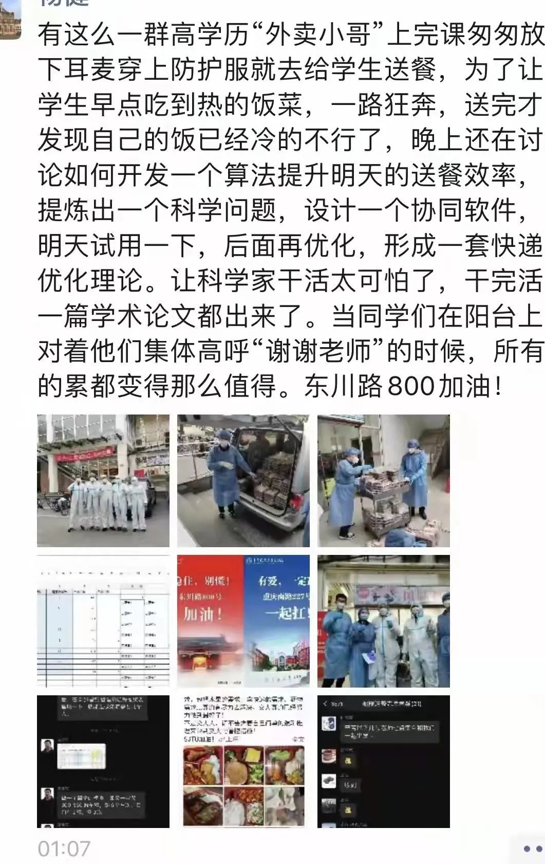 在奔波送餐之余,老师们还讨论起开发算法提升送餐效率,机动学院、电院都为送饭“卷”了起来……