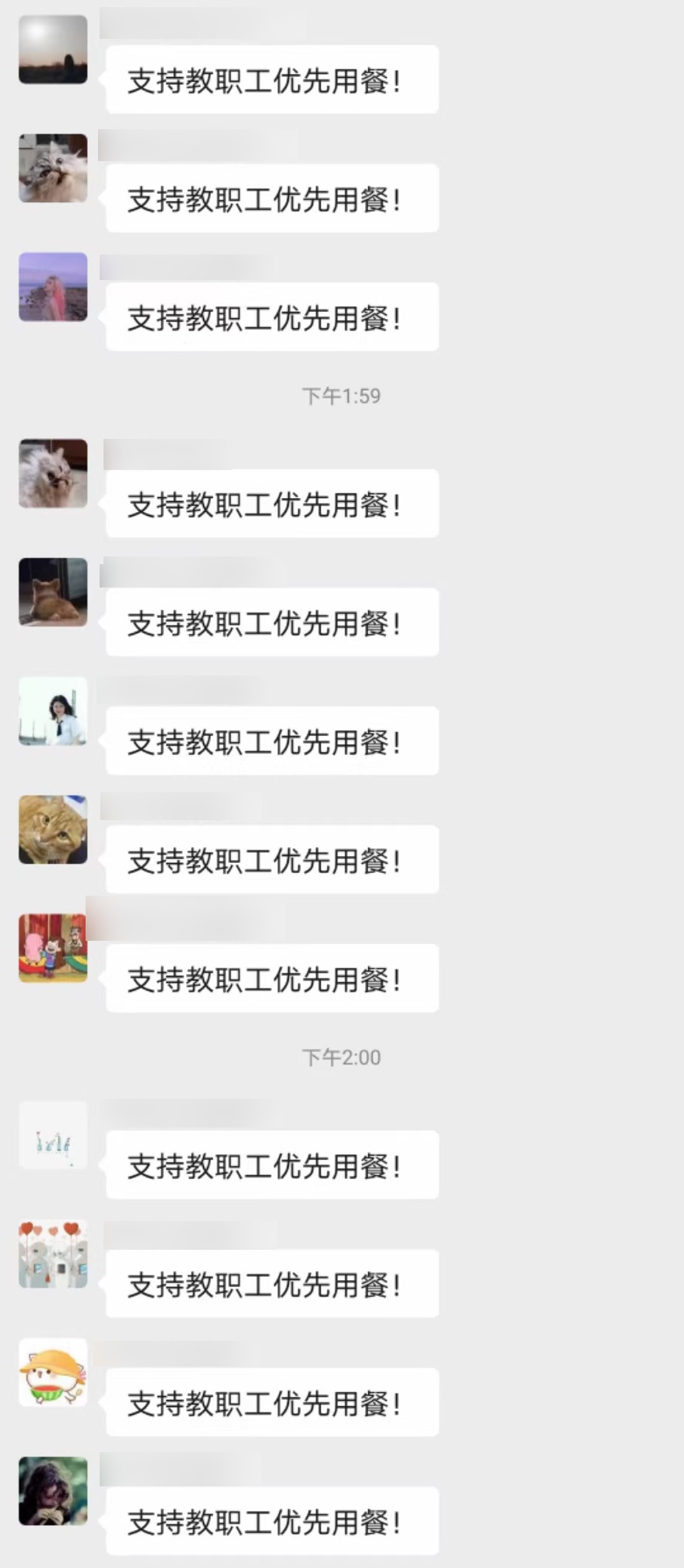 学生在隔离群里接龙要求老师先用餐!