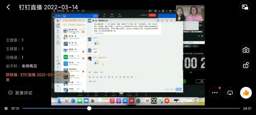 丁昊琰老师还作为“线上巡视员”,潜伏进入各个讨论的小组中,发现没有发言的沉默孩子,唤醒注意力分散的孩子,甚至挑起“事端”,让观点碰撞更多,讨论更有深度。