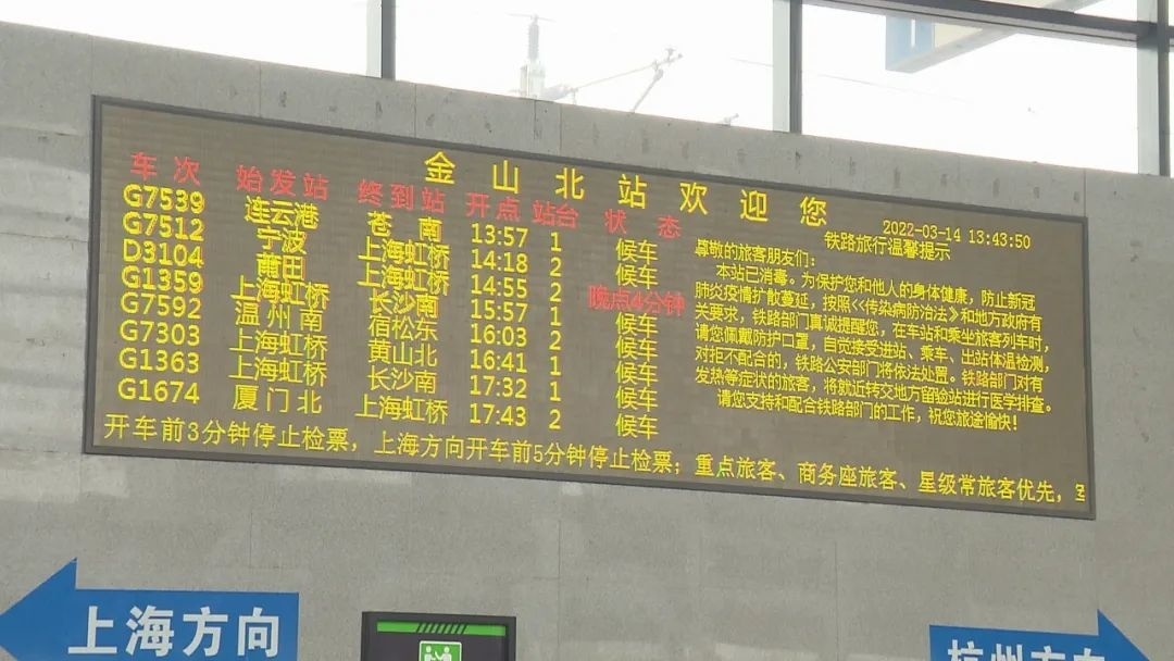据站内工作人员介绍,受本轮疫情影响,截至3月15日,金山北站42趟班次已经停运13趟。