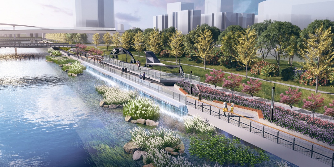 另一座公园则是在张正浦段河道周边,将进行河道疏浚、岸坡加固、新建及翻新防汛通道,联合已建成的天麓、云霞绿地,建成一座亲水公园,河水与陆域紧密相连,可滨水漫步,亦可林下穿行。